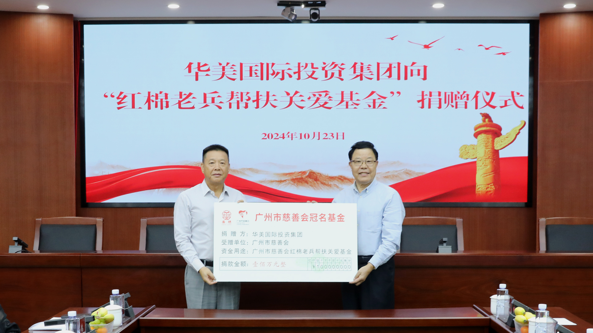 - 10月23日,广州市退役军人事务局举办华美国际投资集团向“广州市慈善会红棉老兵帮扶关...